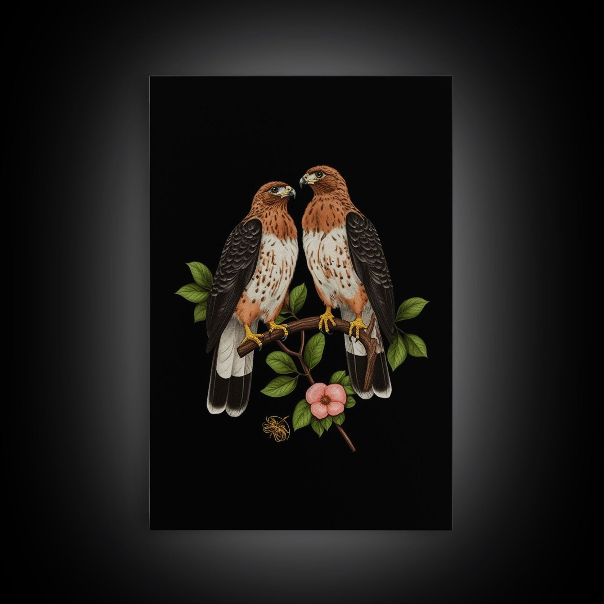 Pair Of Hawks, Birds Wall Art, Hawk Wall Decor, Animal Wall Decor, Nature Art, Wall Decor, Canvas Print, Wall Art, Framed Canvas Art