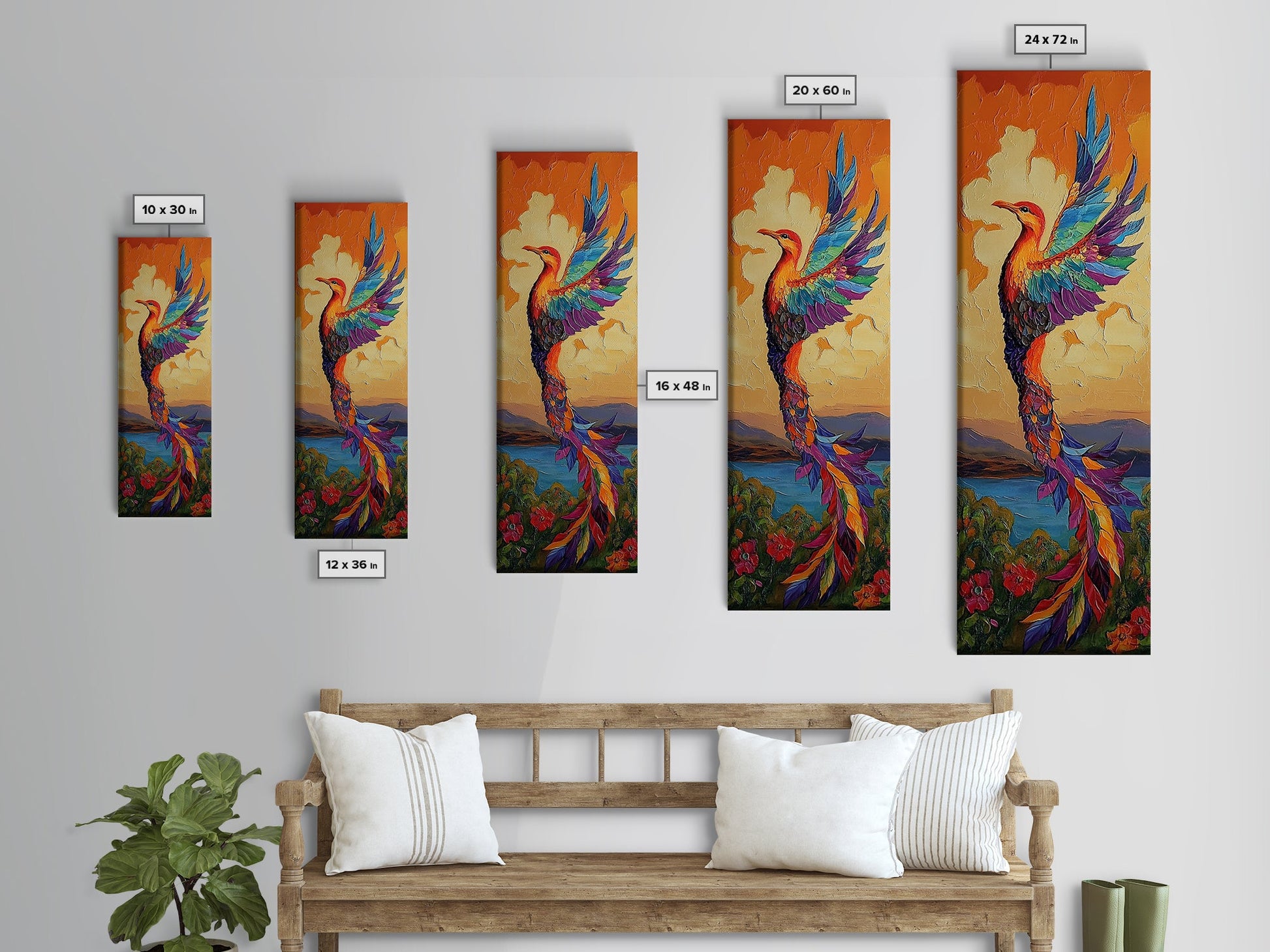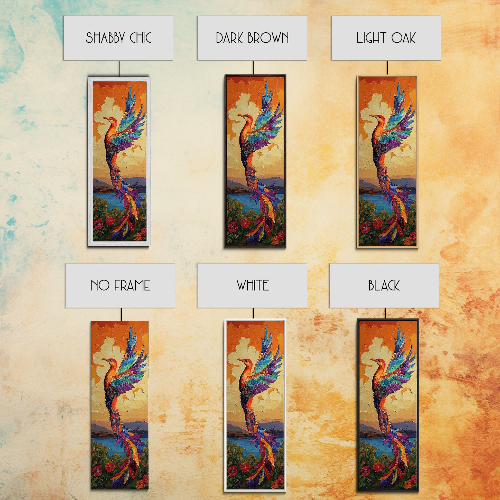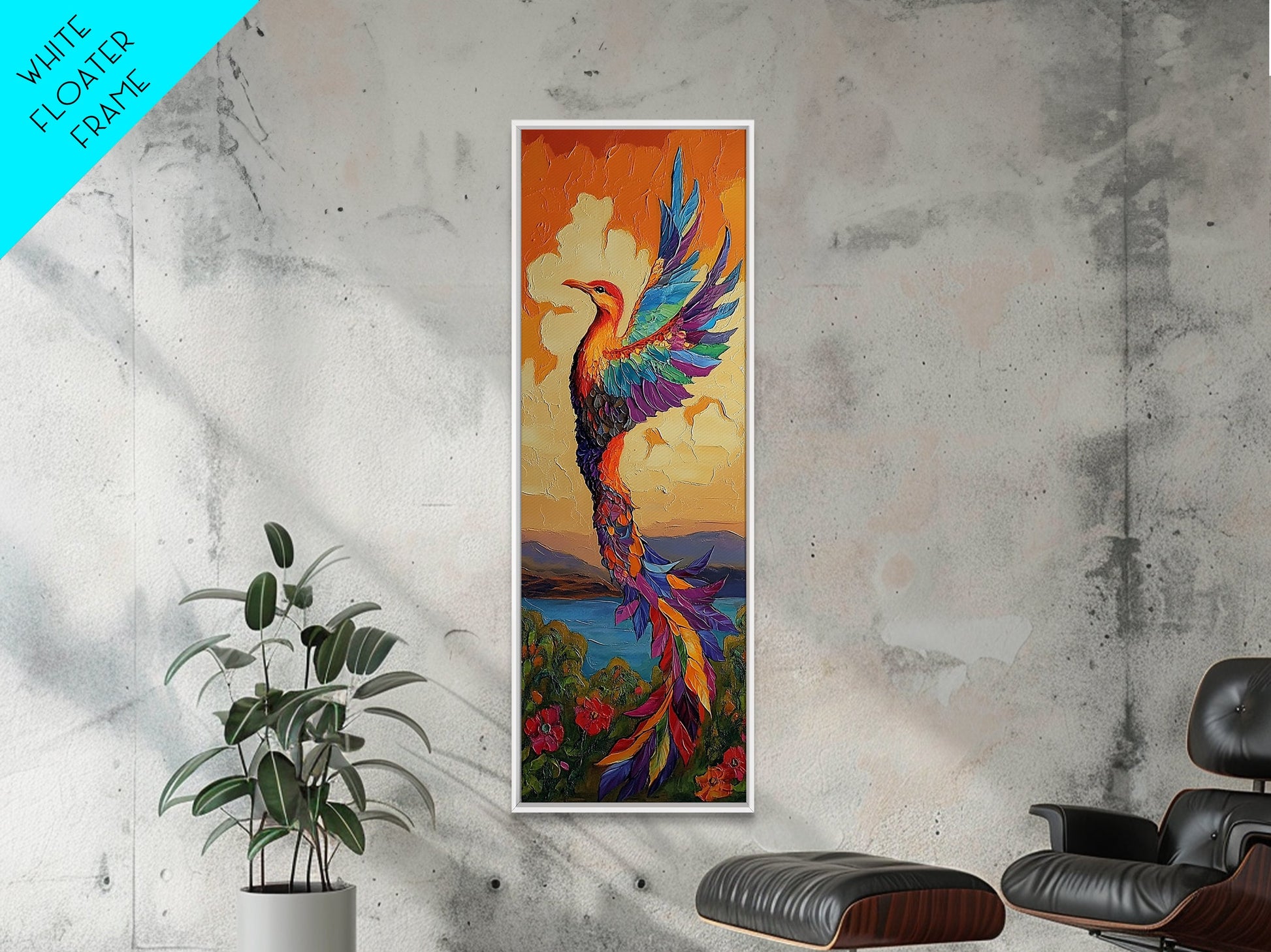 Phoenix Firebird, Sunset, Framed Canvas Print, Vibrant Mythical Wall Art, Boho Spirit Animal Decor, Bold Bedroom Statement Piece