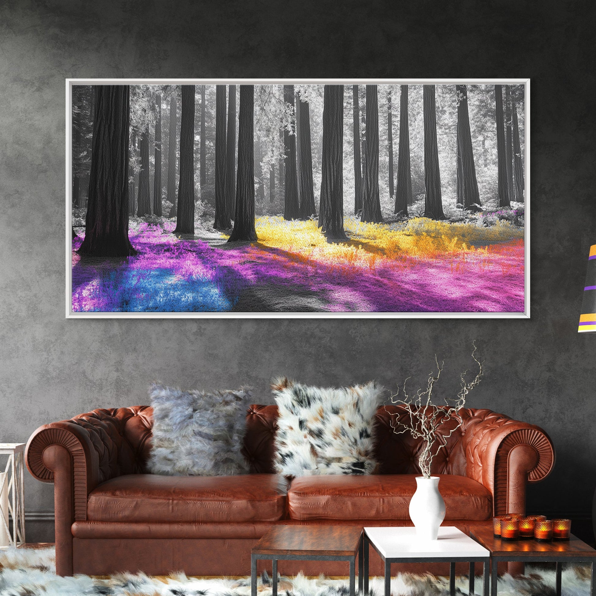 Rainbow Forest, Enchanted Woods, Dreamscape Landscape, Fantasy Nature, Framed Canvas Print whimsical nursery art, boho bedroom wall art