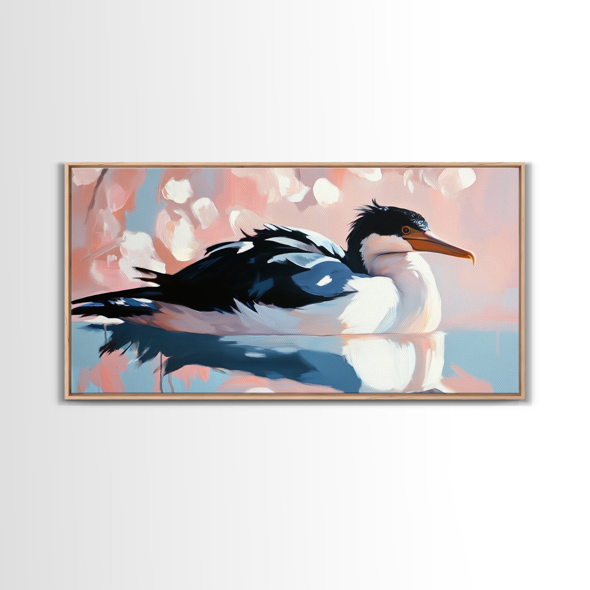 Seabird Reflection, Waterfowl Art, Coastal Wildlife, Nature Print, Framed Canvas Print, Bedroom Wall Art, Modern Animal Art