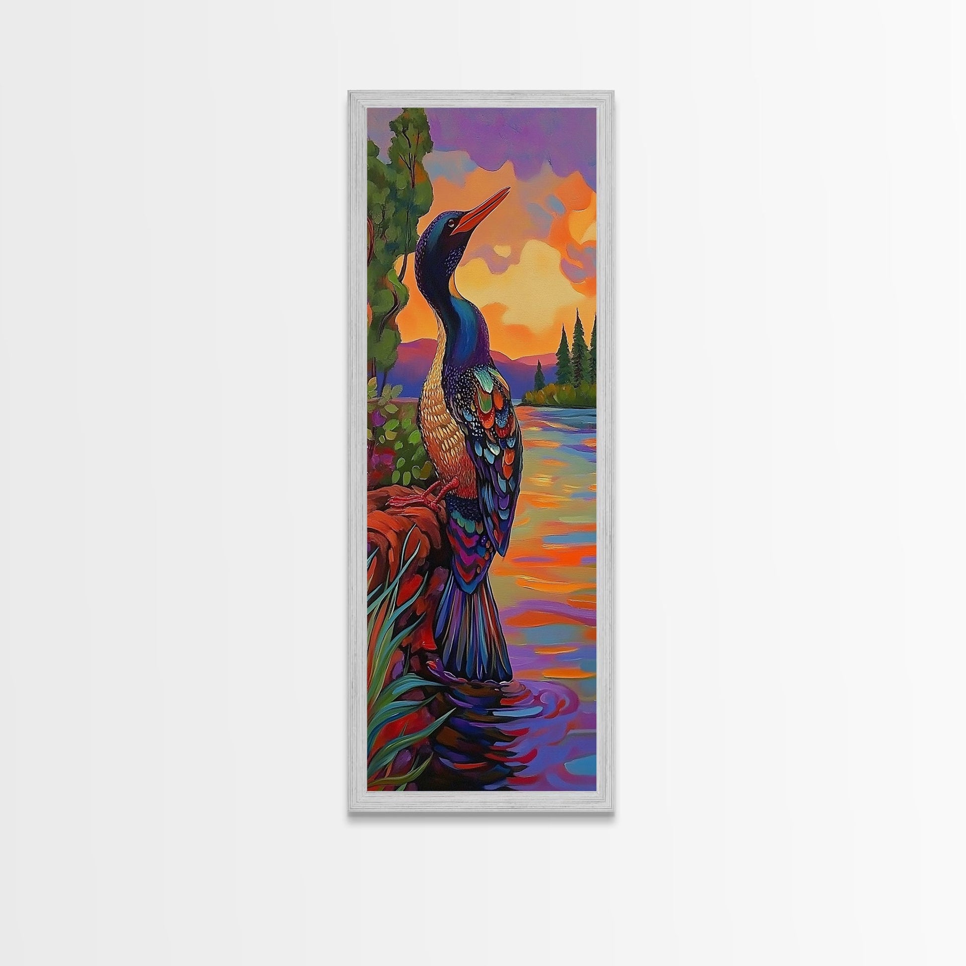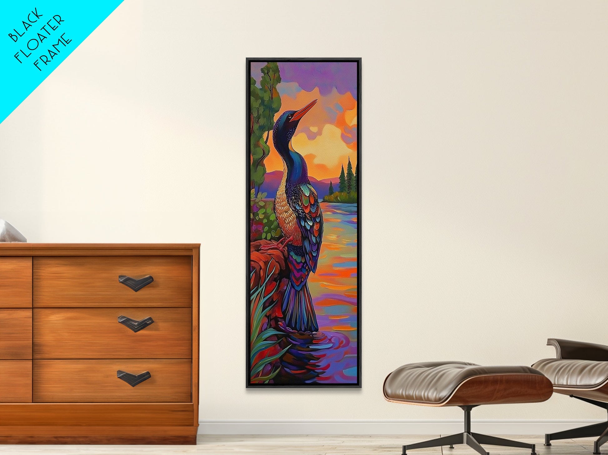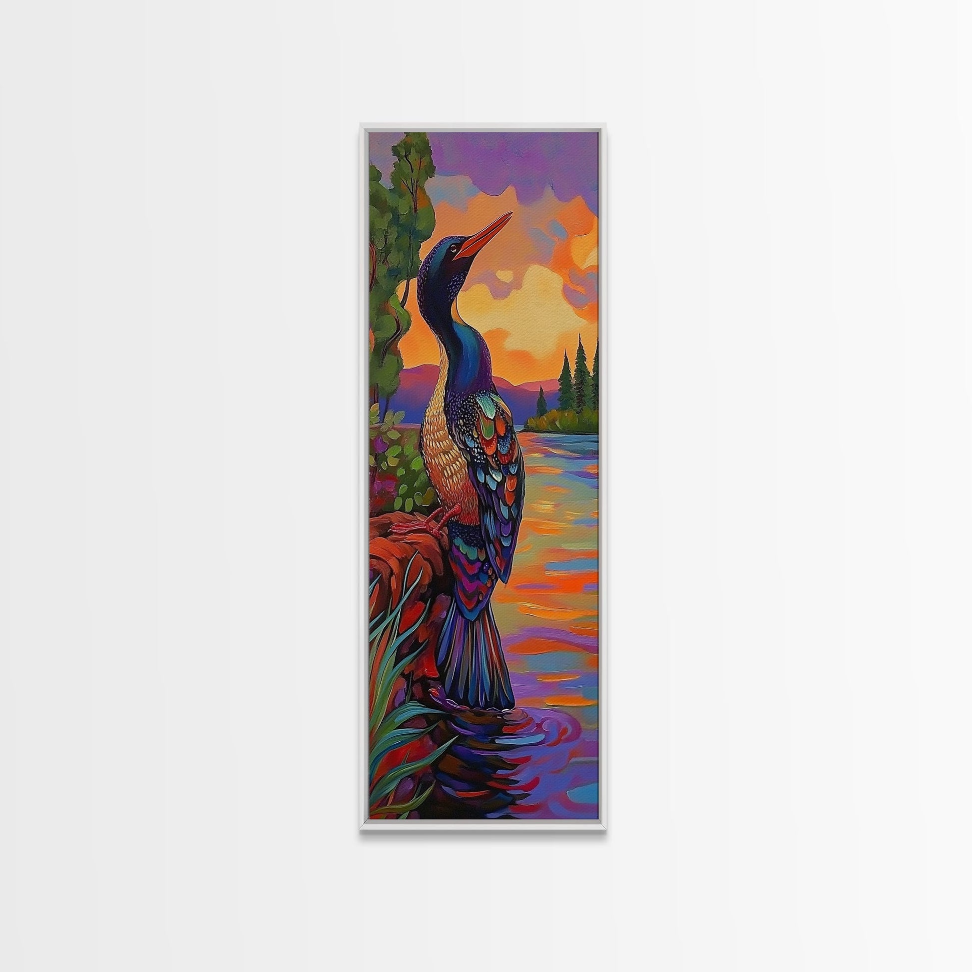 Sunset, Lake, Bird, Nature, Framed Canvas Print vibrant lakeside bird wall decor colorful boho birdwatching themed bedroom wall art