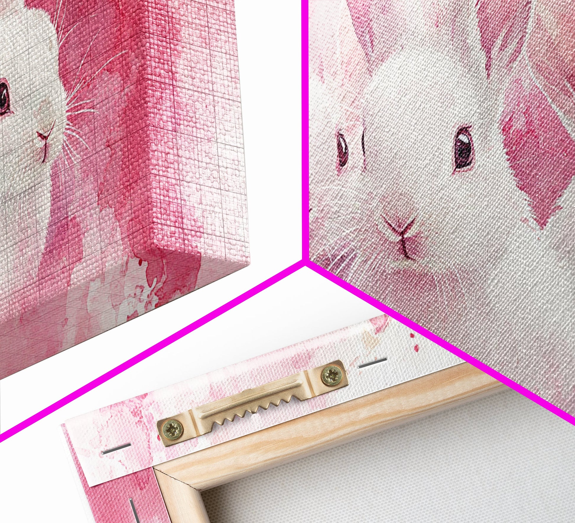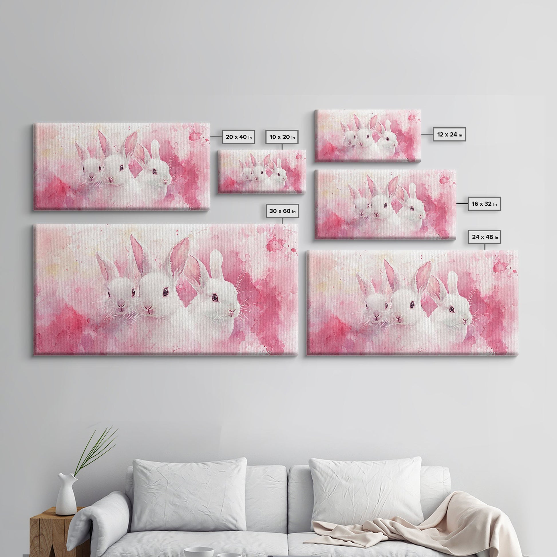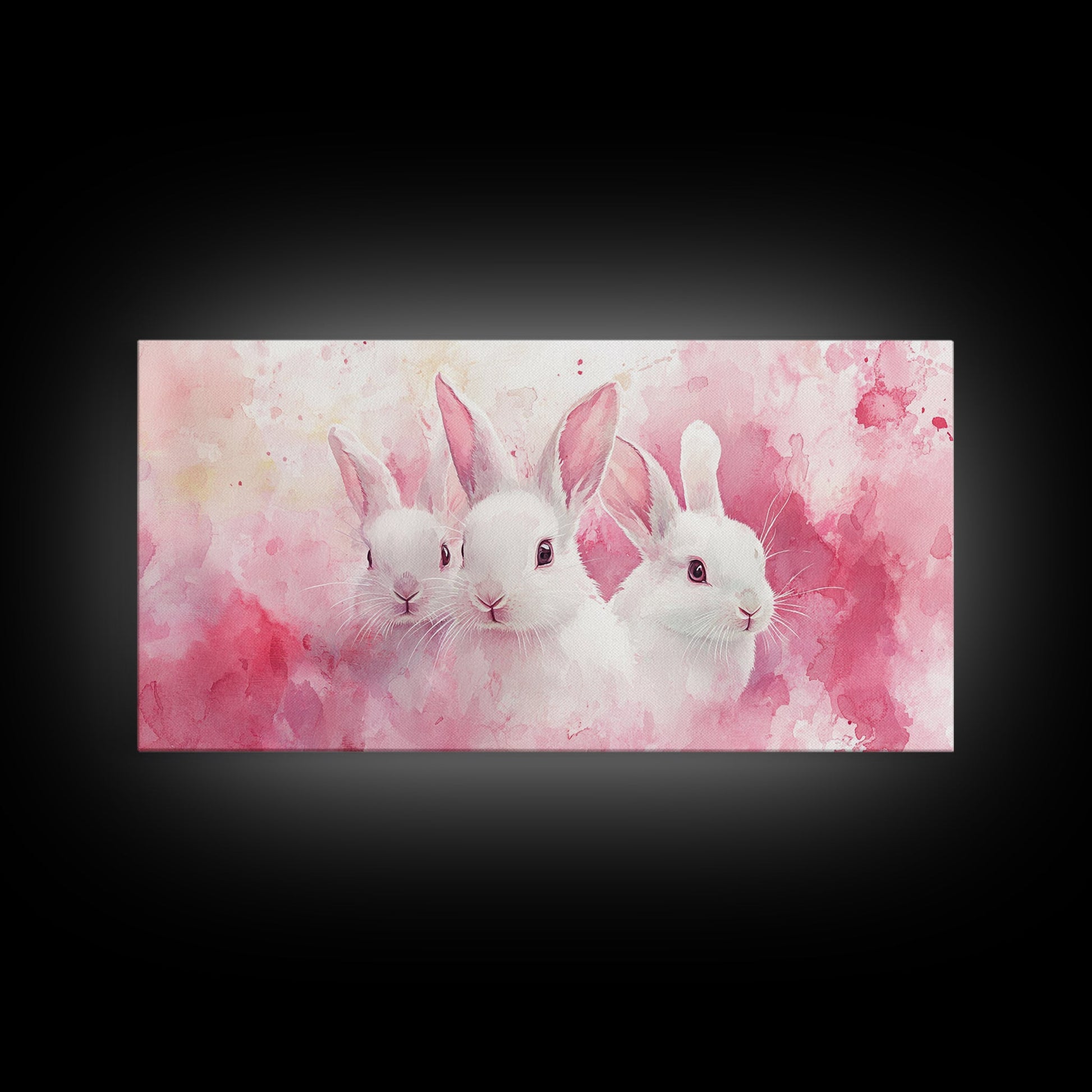 Three Bunnies Canvas Print, Adorable Pink Abstract Art Featuring Rabbits, Whimsical Nursery Wall Decor or Easter Themed Art