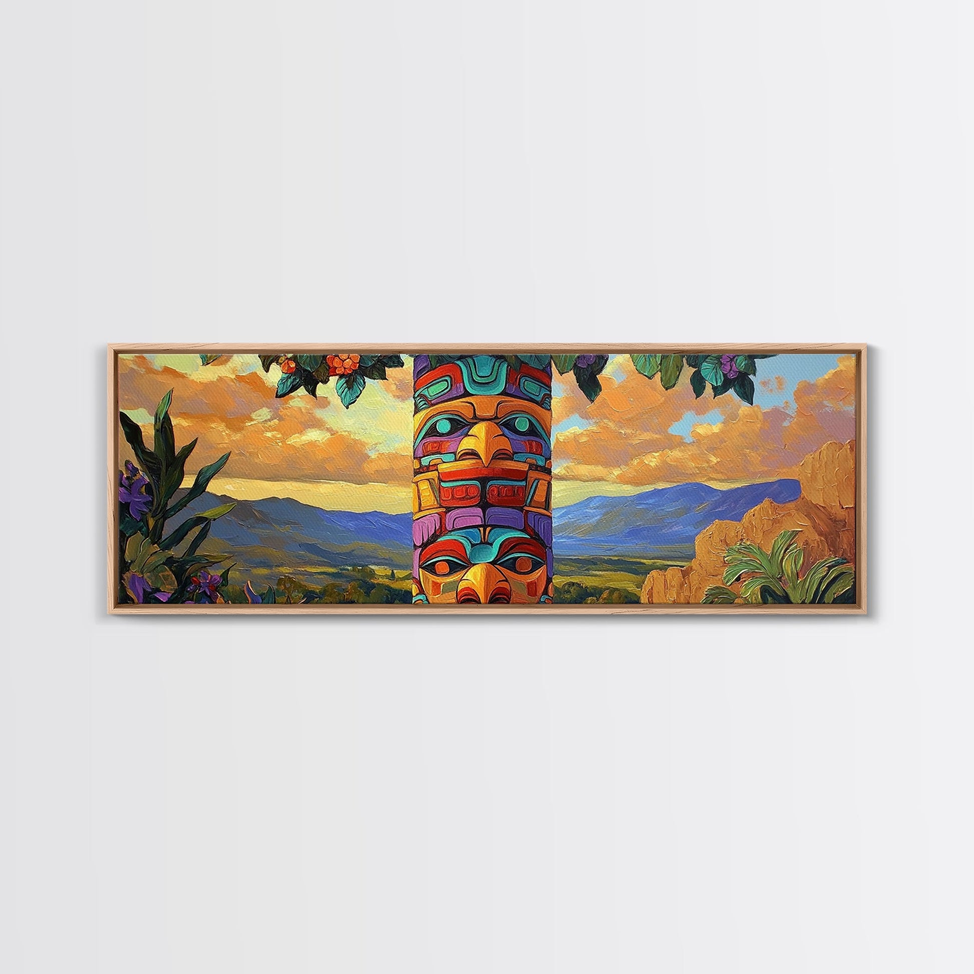 Totem Pole Art, Southwest Style, Desert Sky, Framed Canvas Print, Native Inspired, Living Room Wall Art, Cultural Landscape