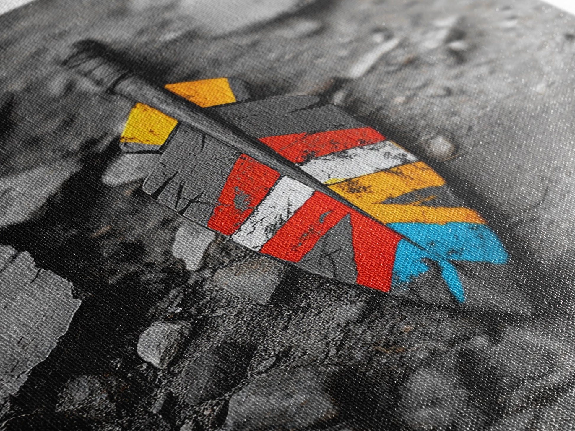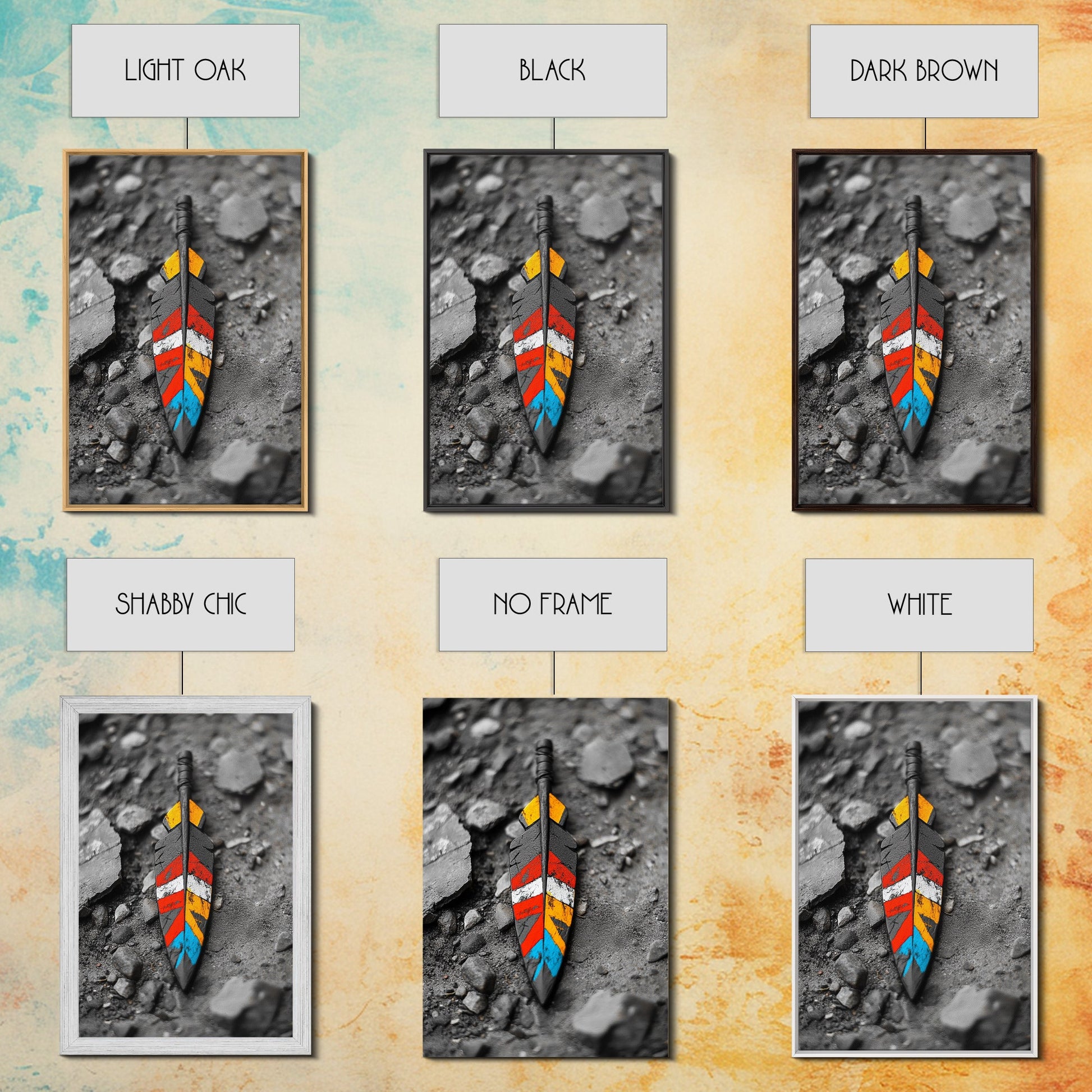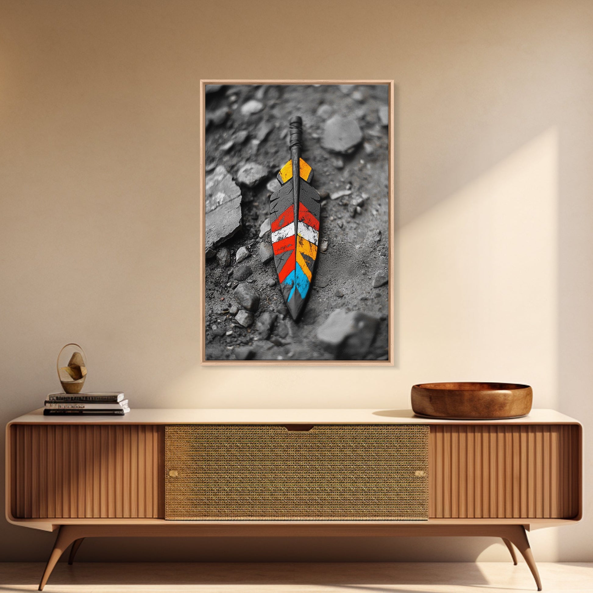 Tribal Feather, Painted Arrow, Rustic Stone Ground, Canvas Print, Boho Wall Art, Native Inspired Decor, Color Pop Rustic Style
