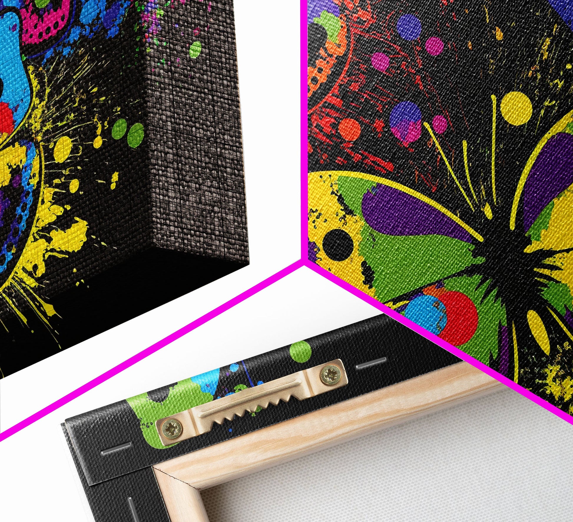 Vibrant Graffiti Butterfly Punk Art, Street Art, Framed Canvas Print, Huge Wall Art, Contemporary Alternative Art