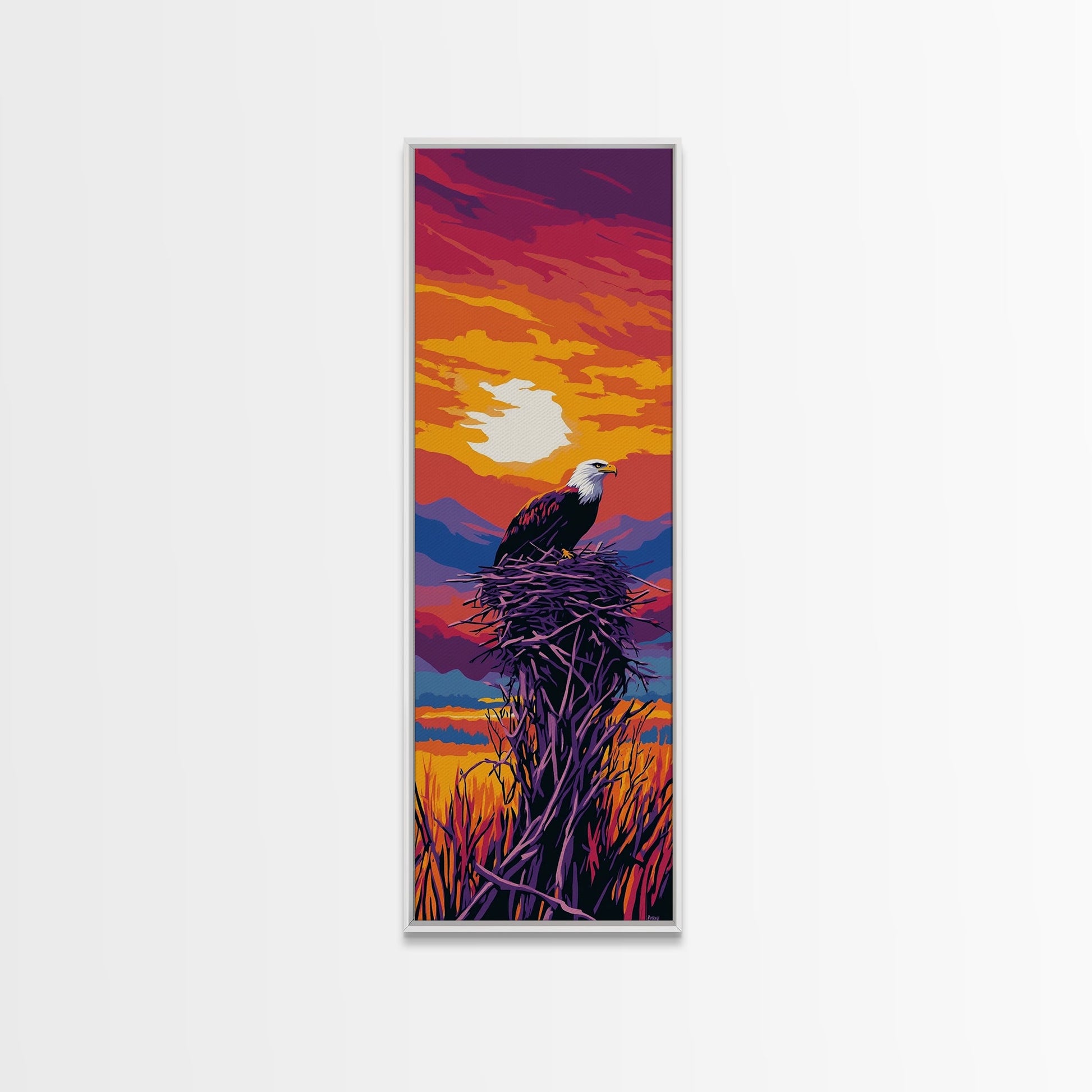 Vibrant Sunset Eagle, Canvas Print, bird art, landscape painting, moody art, rustic décor, southwest wall art, pine tree art, gift idea him