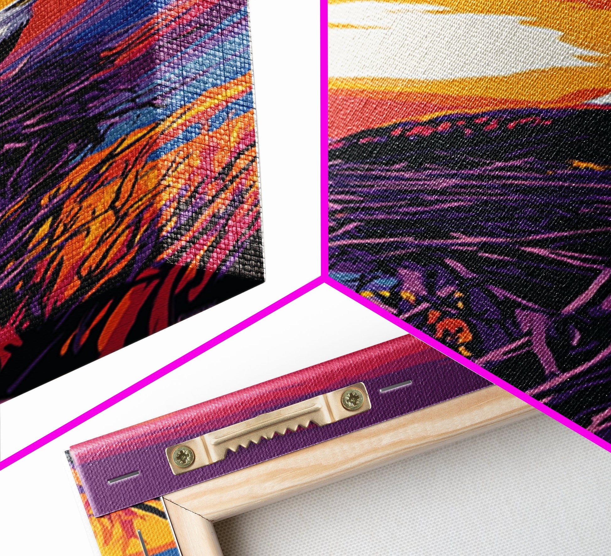 Hello and thank you for taking the time to view our modern high quality giclée artwork! We offer both posters and stretched canvas prints. Our posters are printed on Ultra Matte 60 lb / 230 GSM high quality photo paper, with a thickness of 10 mil. Our canvases are printed on museum grade 350 GSM canvas material with ECO friendly archival grade ink, then hand stretched and stapled over premium, FSC certified and shrink resistant frames. Designed and built to last a lifetime.