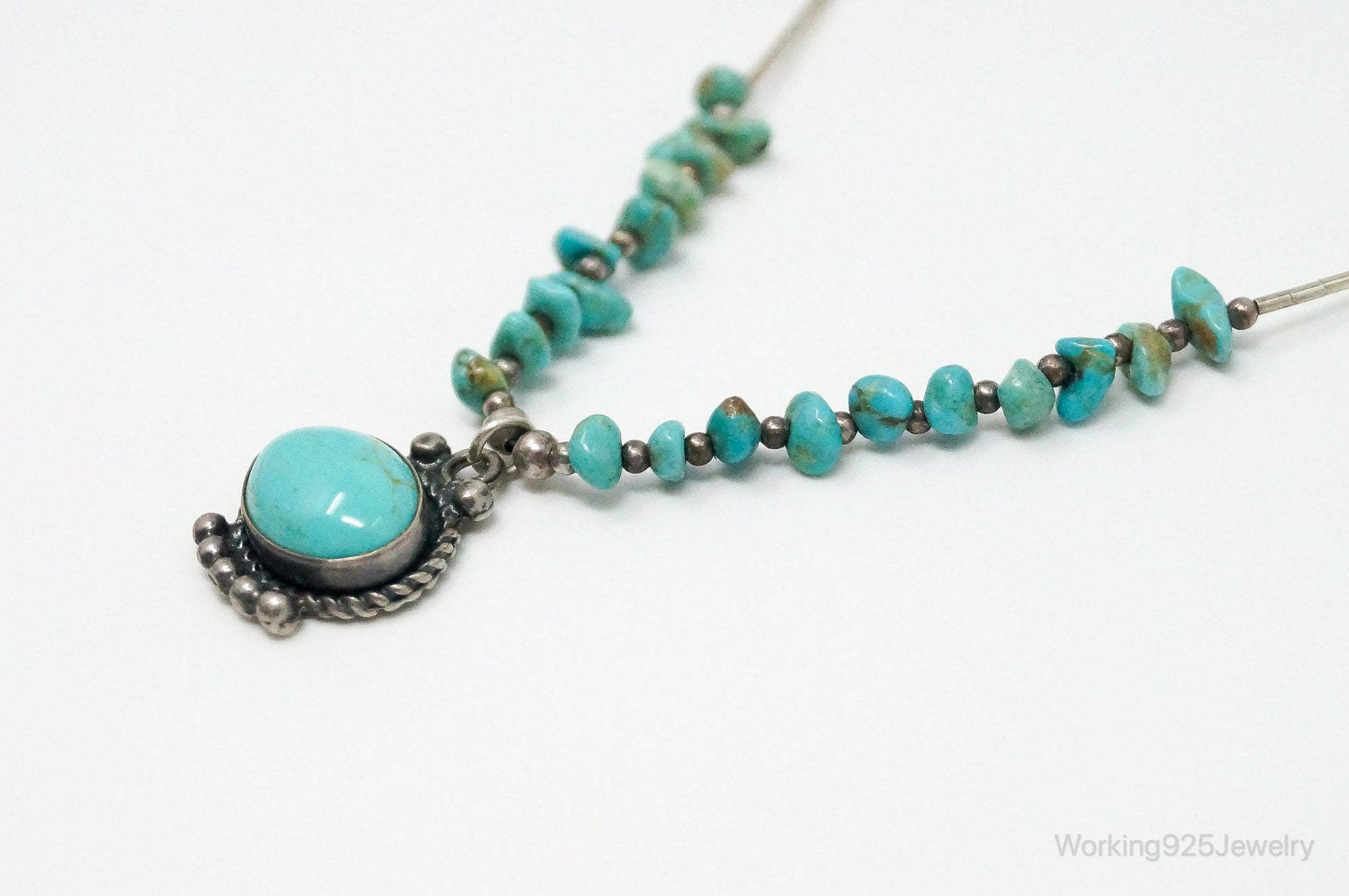 Vintage Native American Large Turquoise Sterling Silver Bead Necklace
