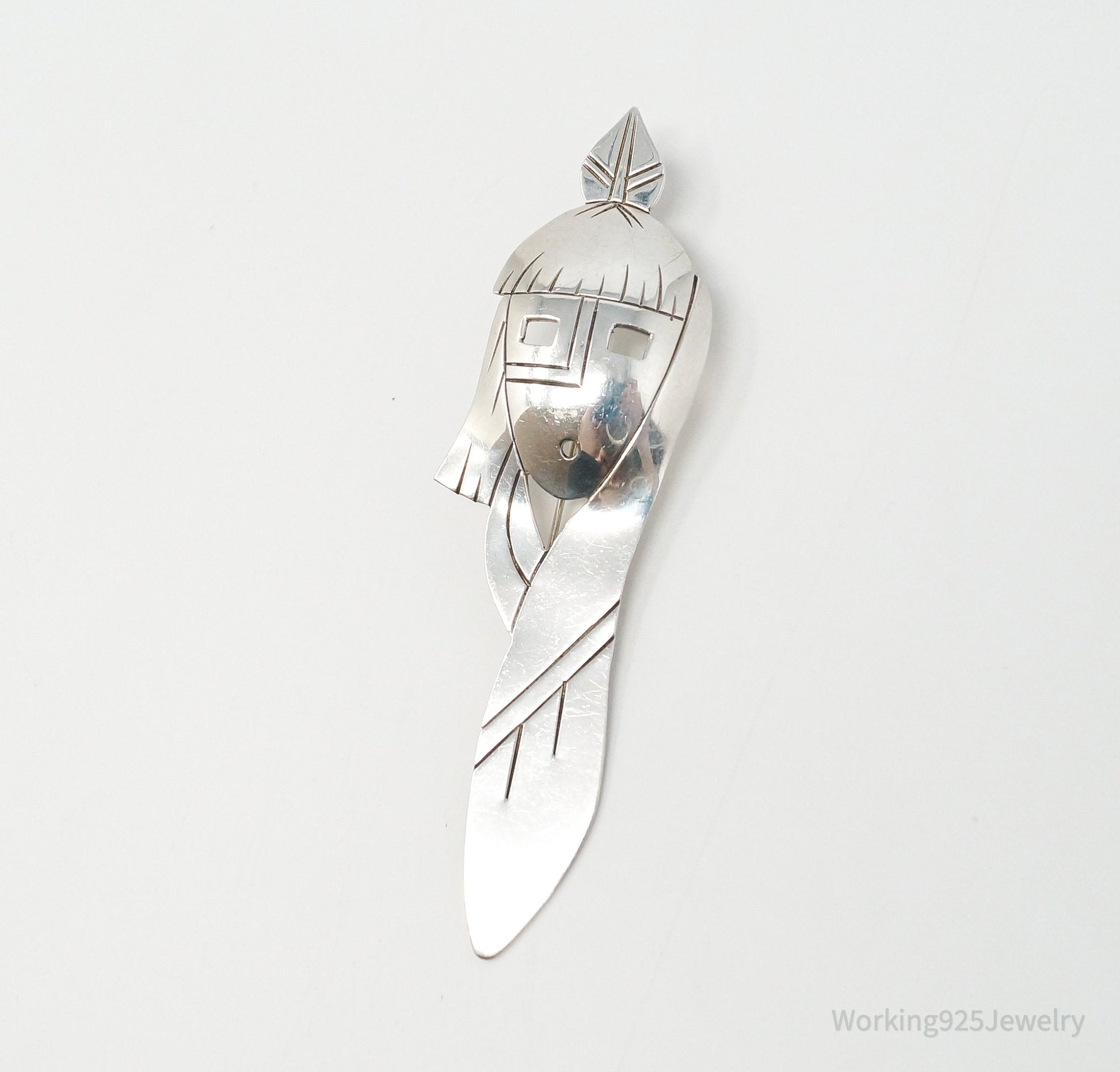 Vintage Native American RMJ Handmade Sterling Silver Brooch Pendant
