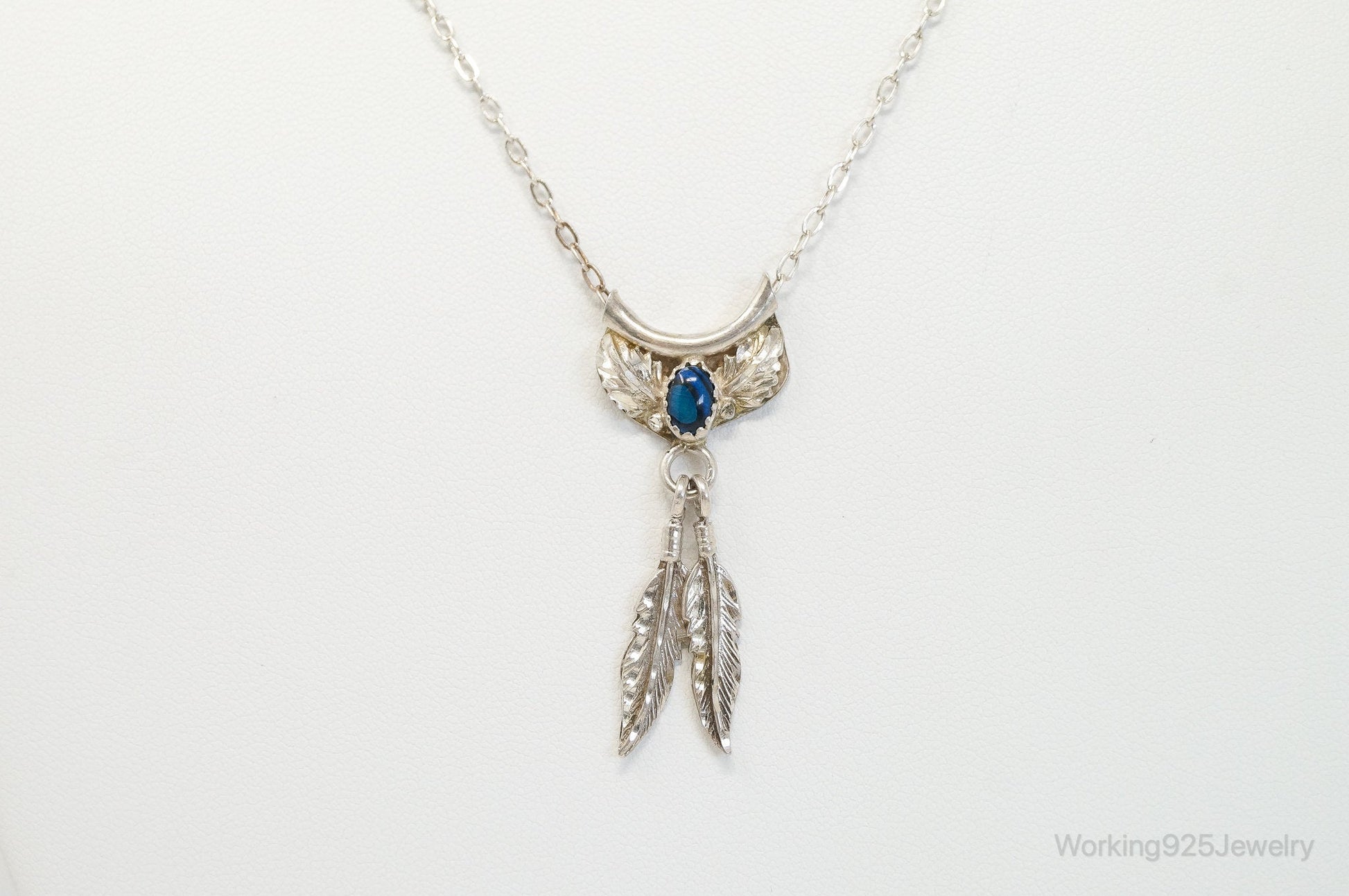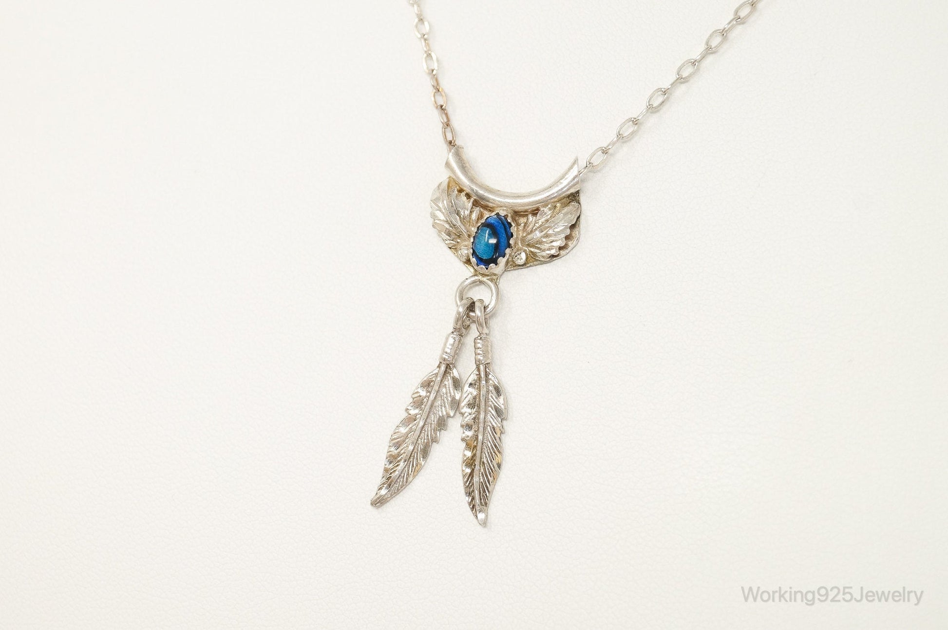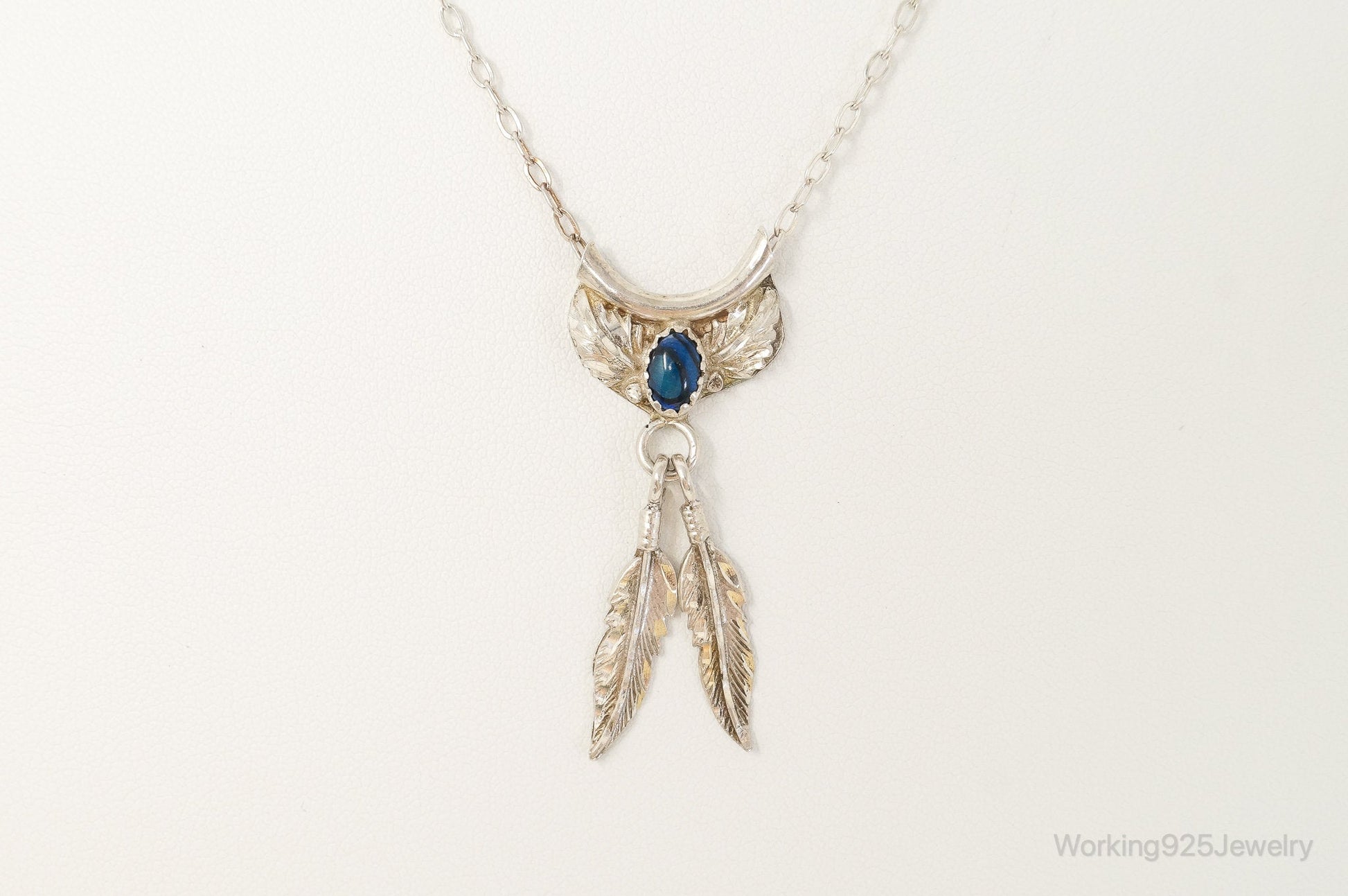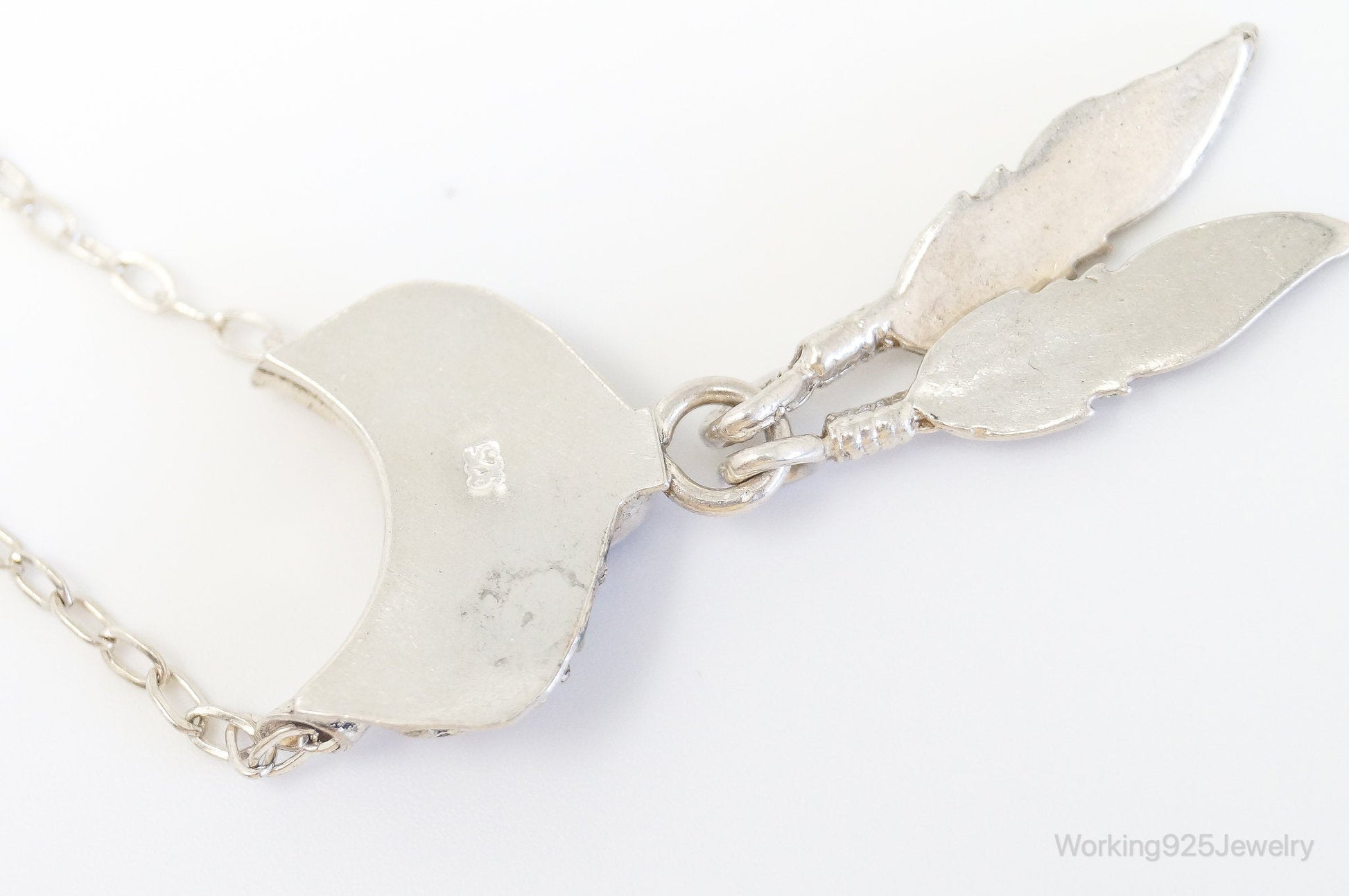 Vintage Native American Unsigned Abalone Shell Sterling Silver Necklace