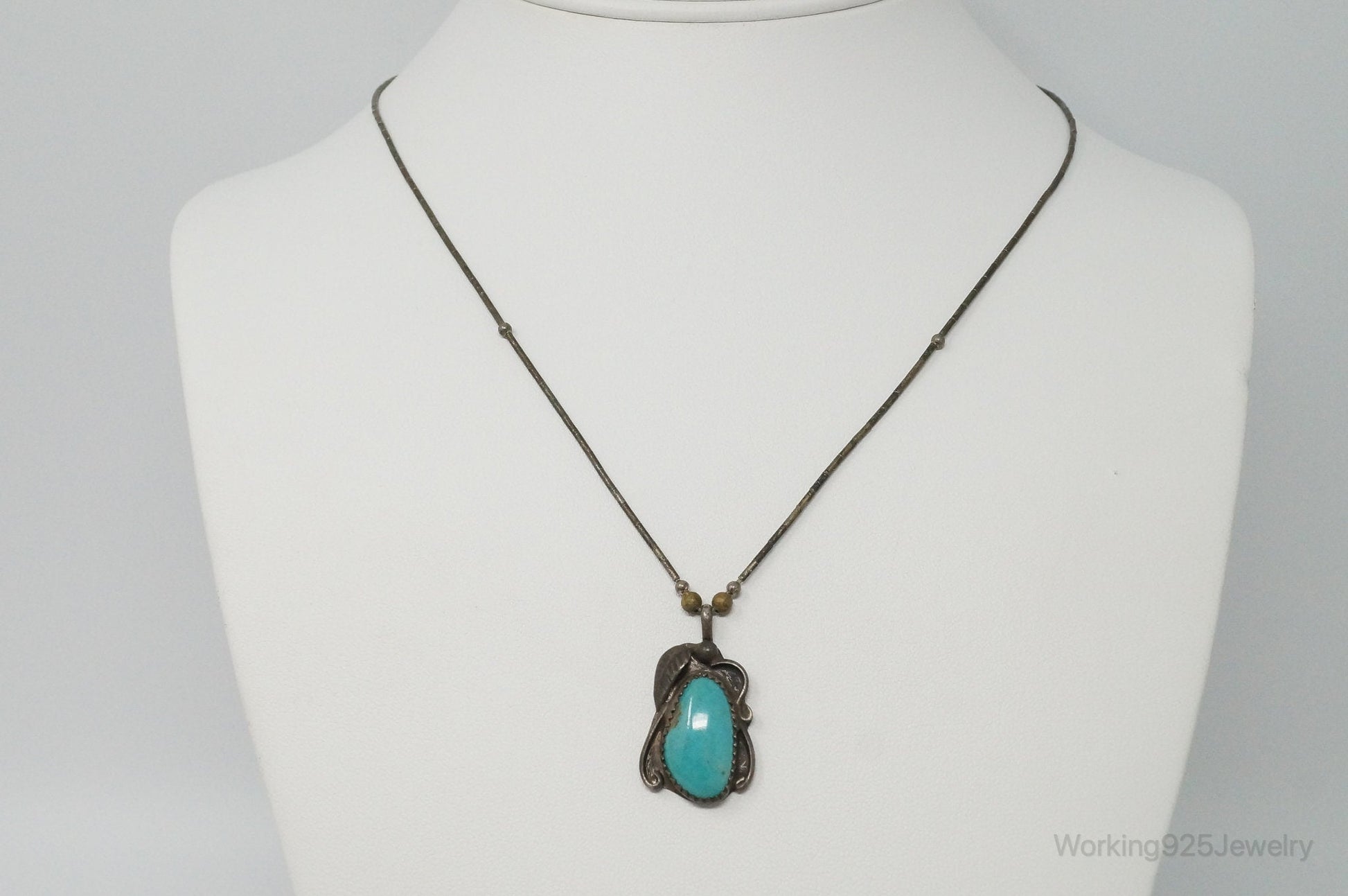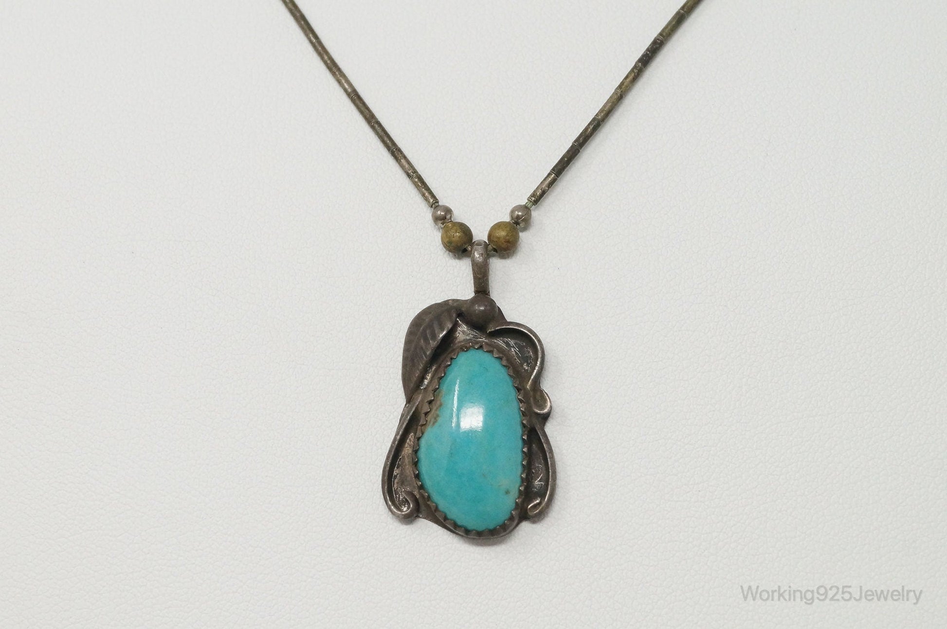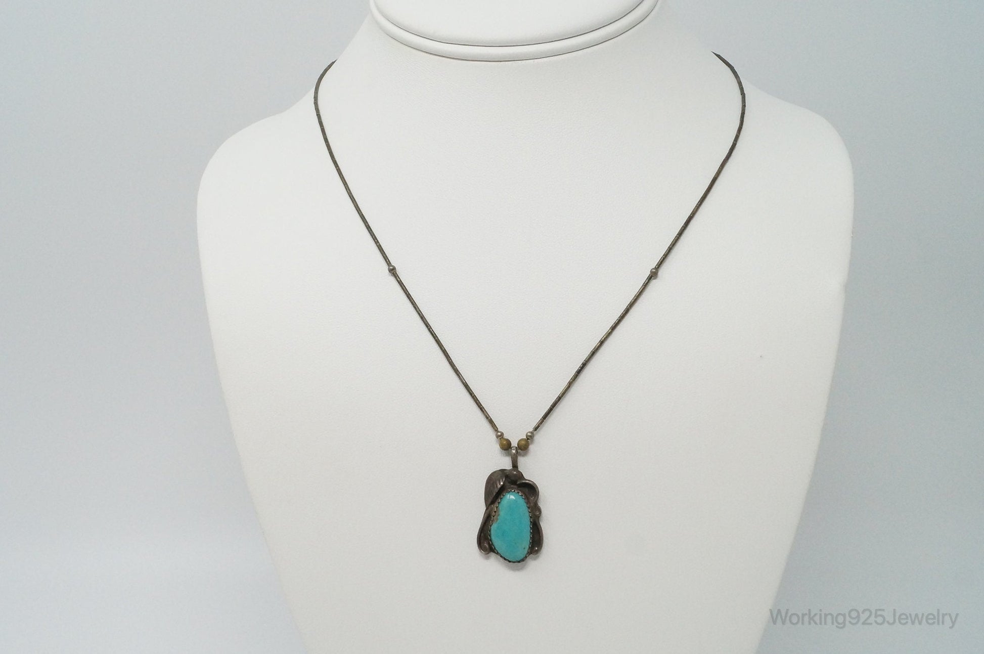 Vintage Native American Unsigned Turquoise Sterling Silver Necklace