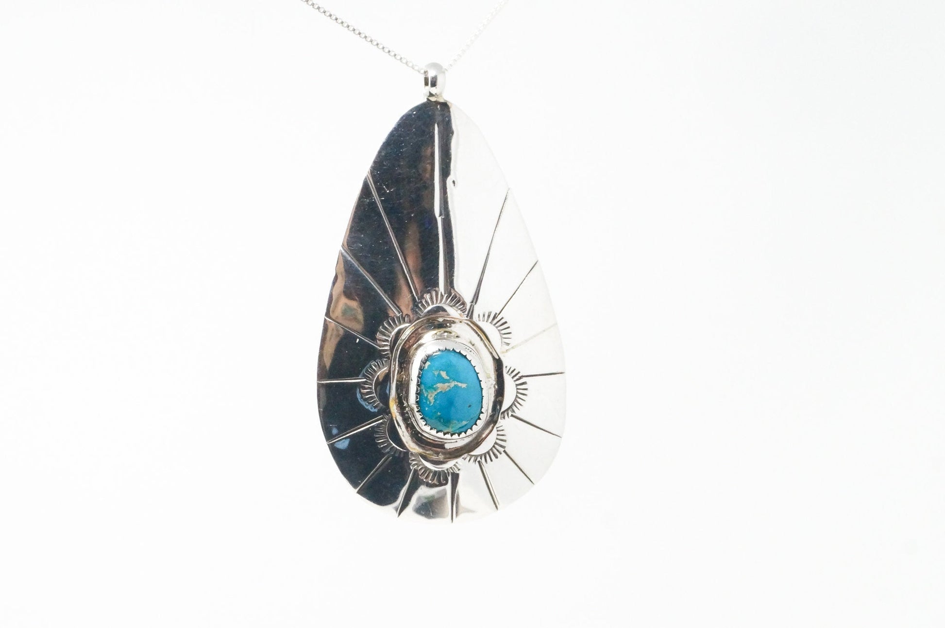 Vtg Native American Eddie Chee Turquoise Sterling Silver Necklace Pendant