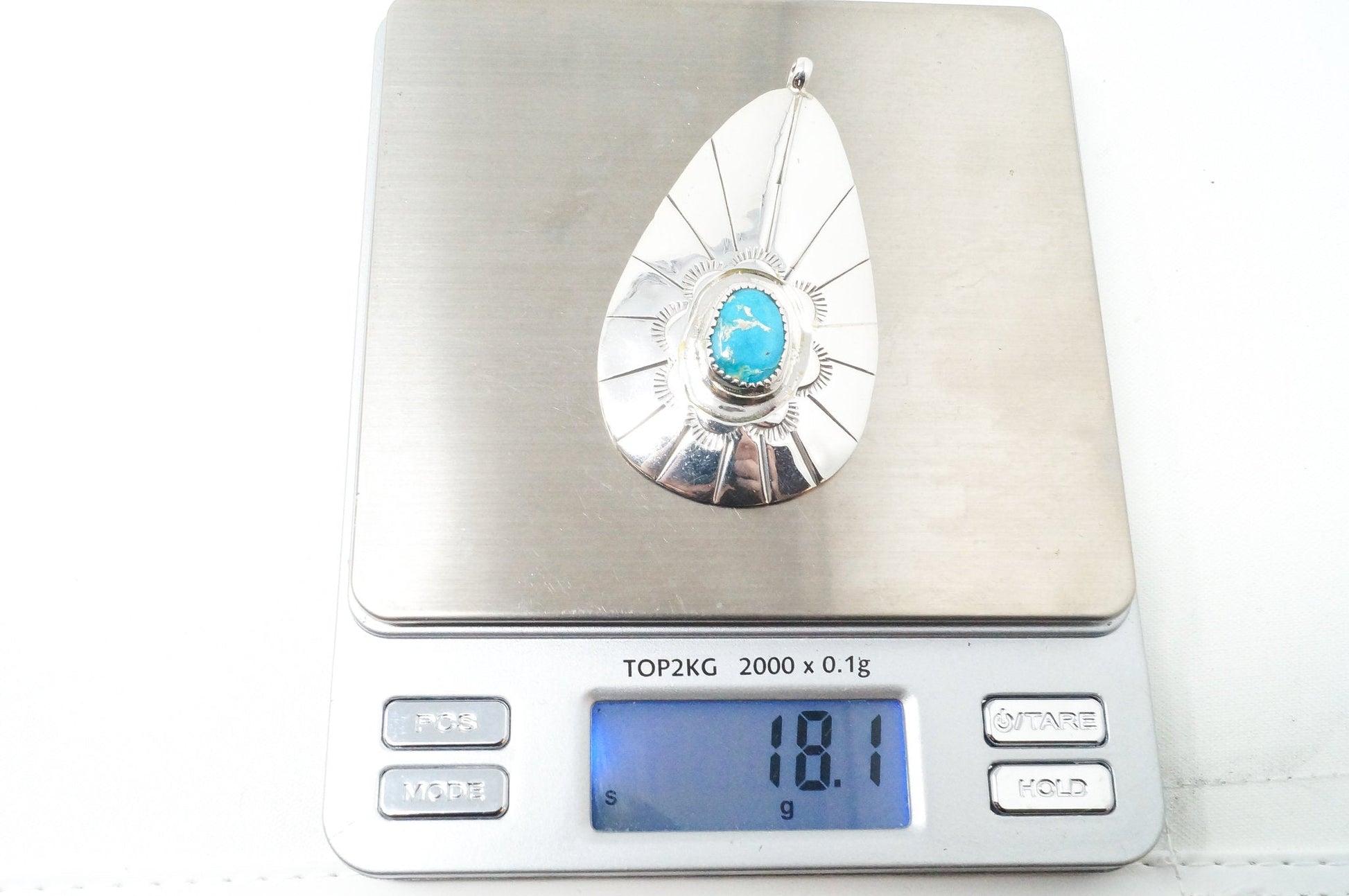 Vintage Native American Signed P.M. Kingman Turquoise Sterling Silver Necklace Pendant
