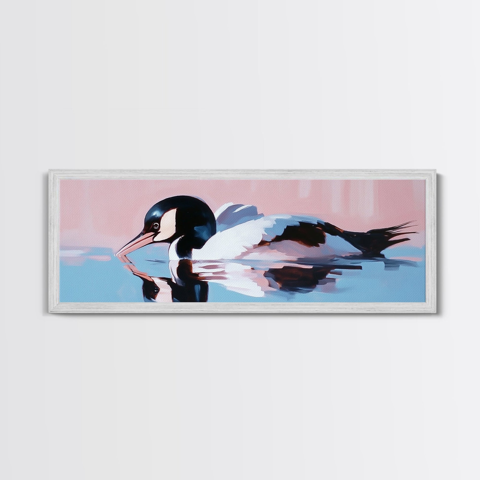 Water Bird, serene wildlife art, nature-inspired home decor, modern minimalist print, framed canvas print, coastal bird artwork