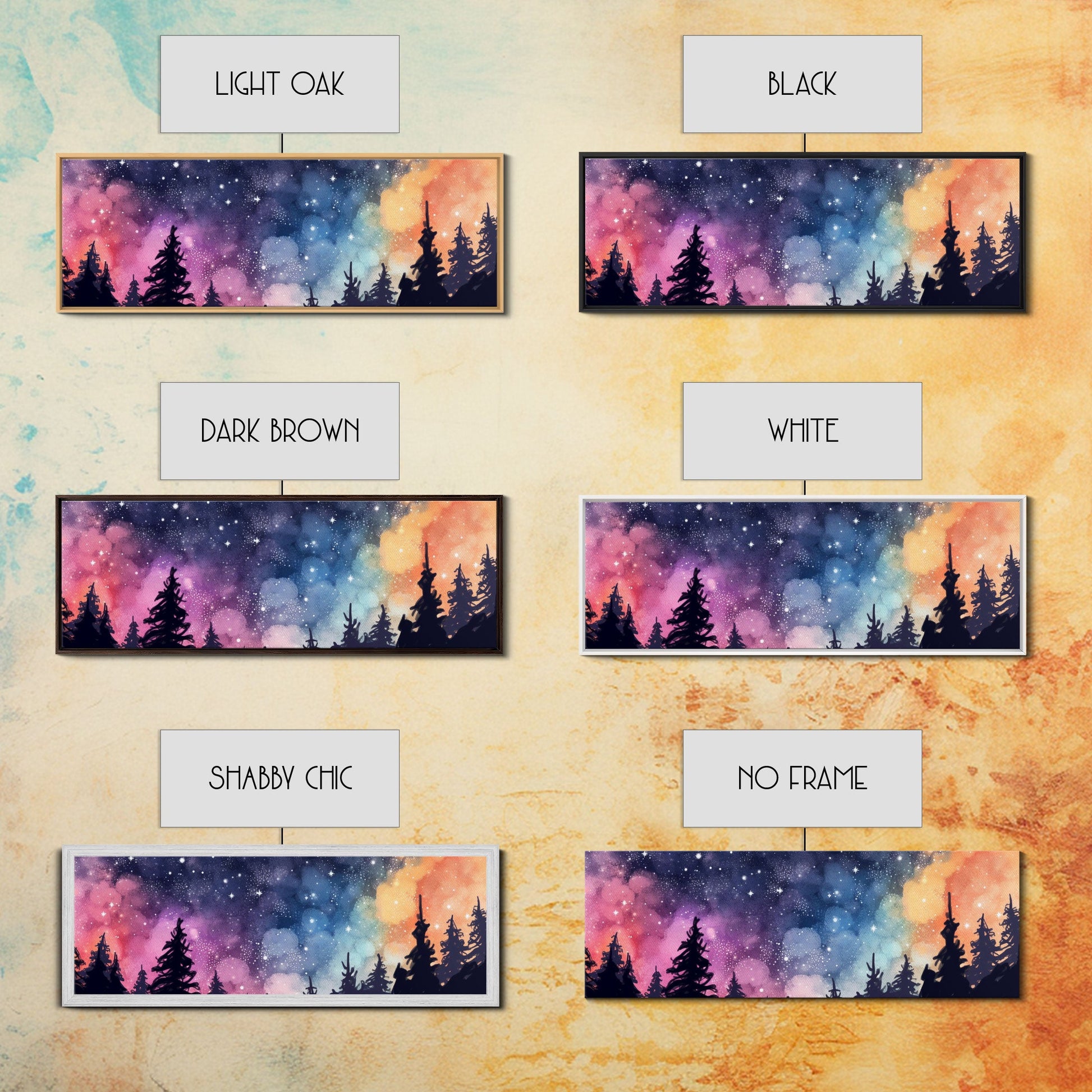 Watercolor Forest Art, Starry Night In The Woods, Abstract Forest Art, Woods Wall Art, Large Canvas Print, Panoramic, Wall Art, Canvas Print