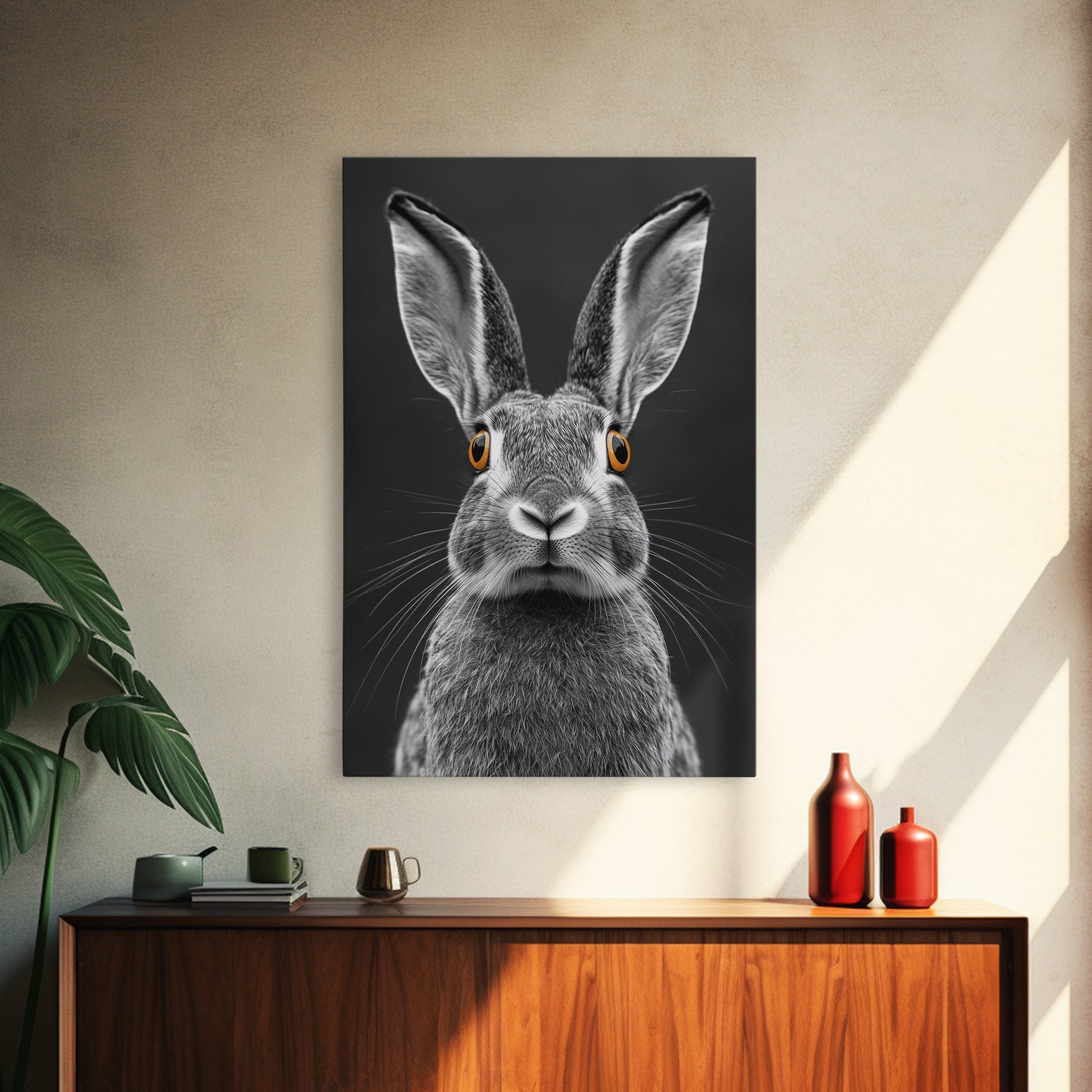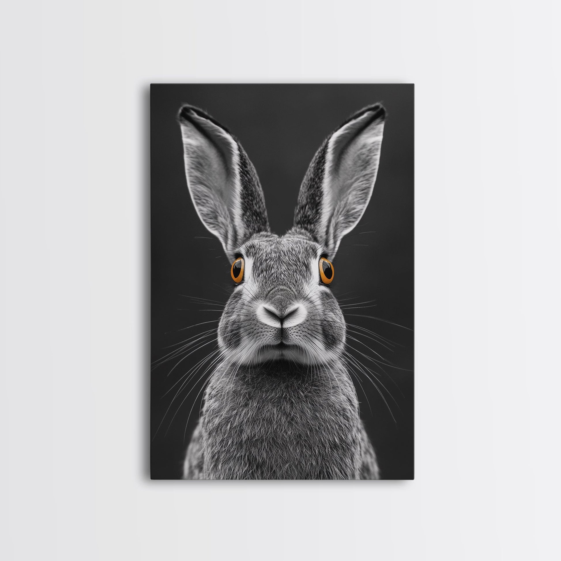 Wide Eyed Rabbit, Animal Portrait, Monochrome Humor, Framed Canvas Print, Nursery Wall Art, Whimsical Minimalist Decor, Funny Gift