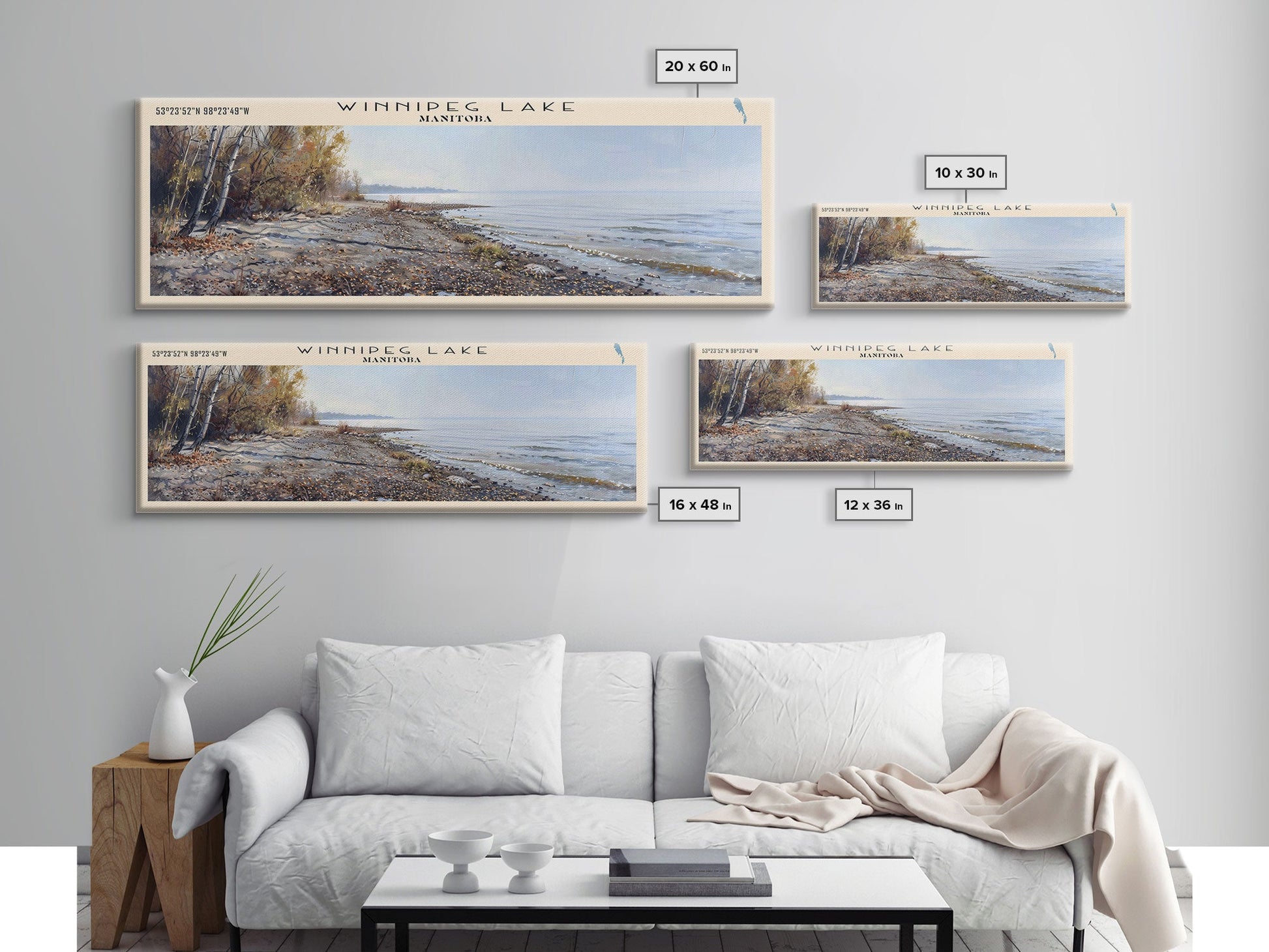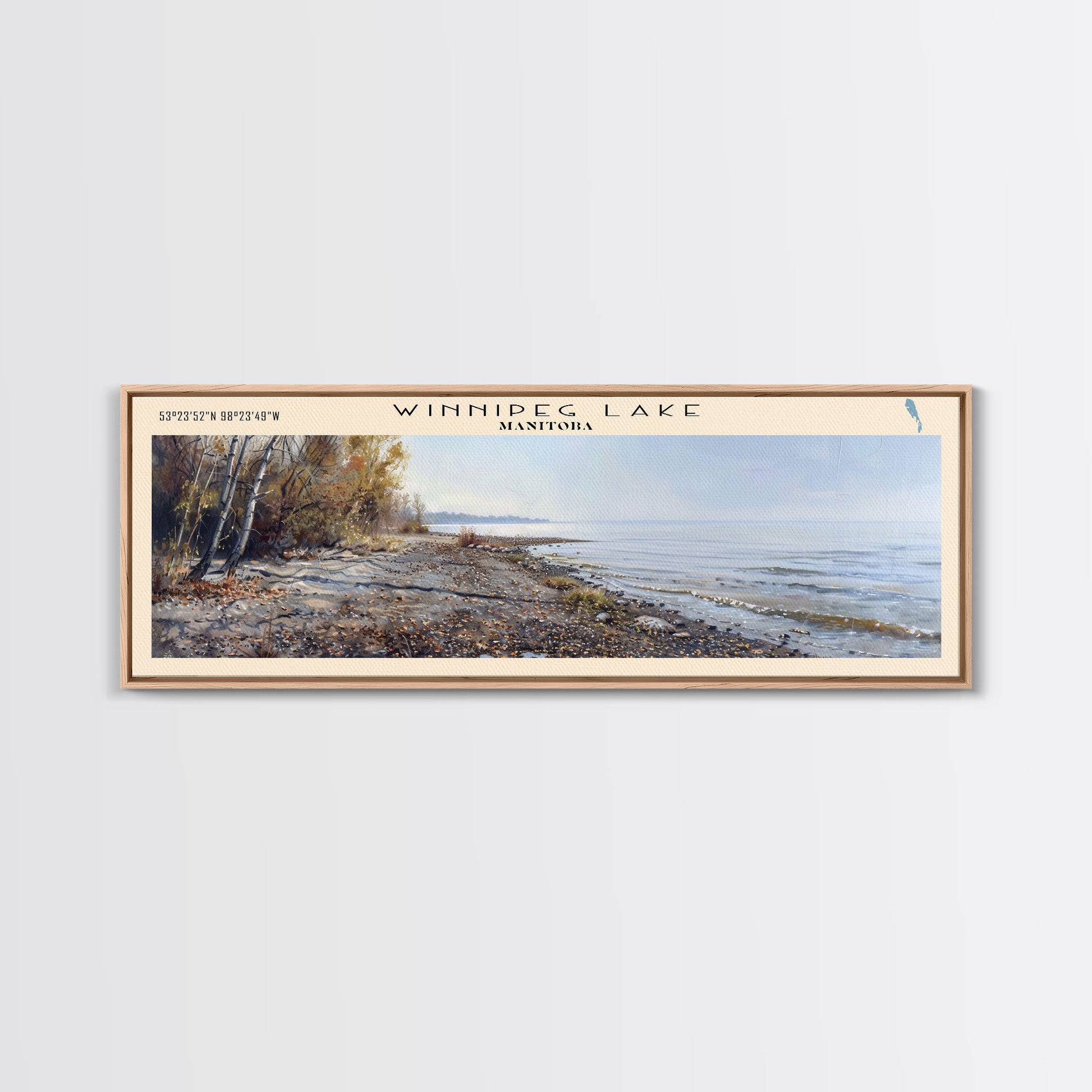 Winnipeg Lake Michigan Panoramic Wall Art, Framed Canvas Print, Lake House Decor, Travel Poster, Scenic Lake Scene, Bedroom Decor
