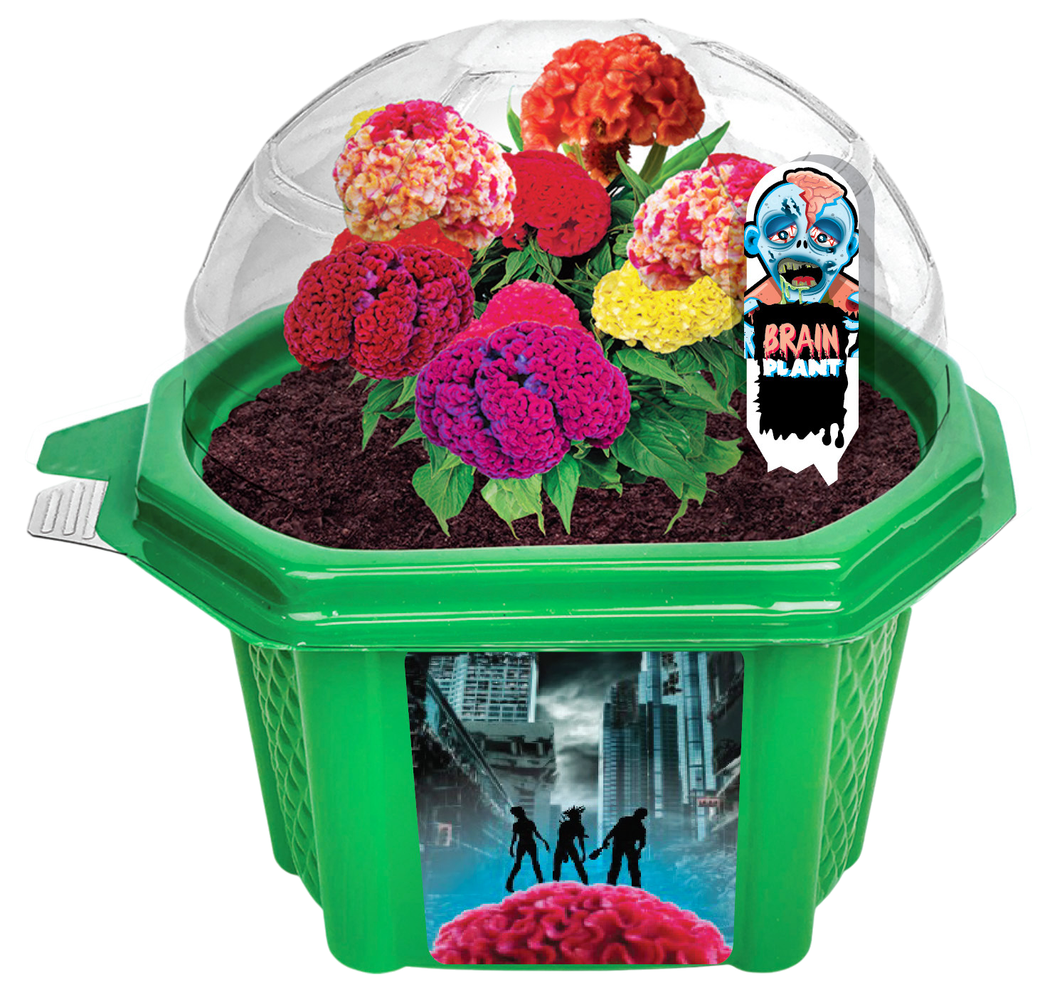 This amazing plant grows blood-red flowers that actually look like BRAINS! (And everyone knows Zombies love to eat brains!) Attracting gruesome and disgusting Zombies to your brain plant is easy! This easy to grow Micro Dome comes with everything you need! It even includes a gloriously gross Zombie Decal and Monster Stake! Just add water to grow some brains for Zombies that really need them!